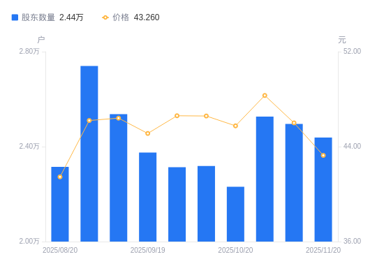 近一年(2024年11月20日至2025年11月20日),新媒股份A股股东户数从2.16万户,增加至2.44万户,增幅12.73%,区间股价上涨9.15%。