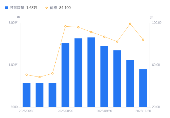 近一年(2024年12月10日至2025年11月20日),强瑞技术A股股东户数从1.14万户,增加至1.68万户,增幅48.08%,区间股价上涨116.87%。
