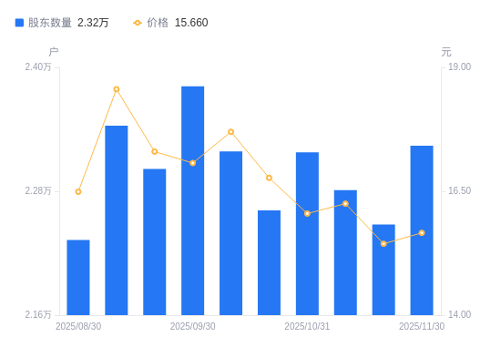 近一年(2024年12月10日至2025年11月30日),钱江摩托A股股东户数从2.5万户,减低至2.32万户,降幅7.17%,区间股价下跌2.85%。
