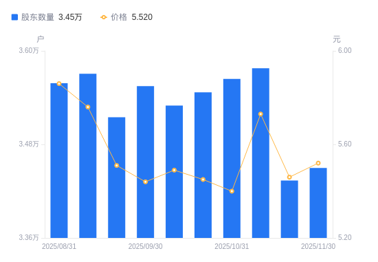 近一年(2024年12月10日至2025年11月30日),天虹股份A股股东户数从3.42万户,增加至3.45万户,增幅1.01%,区间股价上涨5.34%。