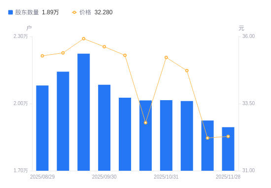 近一年(2024年11月29日至2025年11月28日),南京聚隆A股股东户数从1.67万户,增加至1.89万户,增幅13.25%,区间股价上涨40.08%。