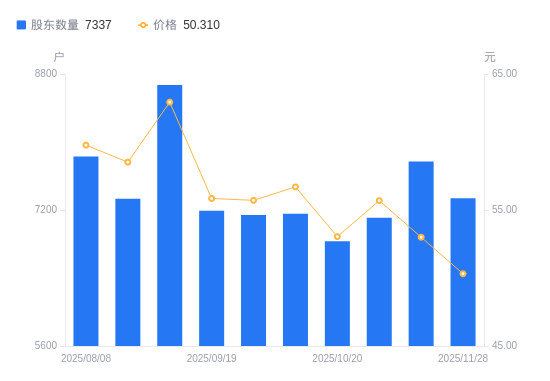 近一年(2024年11月29日至2025年11月28日),盛帮股份A股股东户数从7136户,增加至7337户,增幅2.82%,区间股价上涨15.71%。