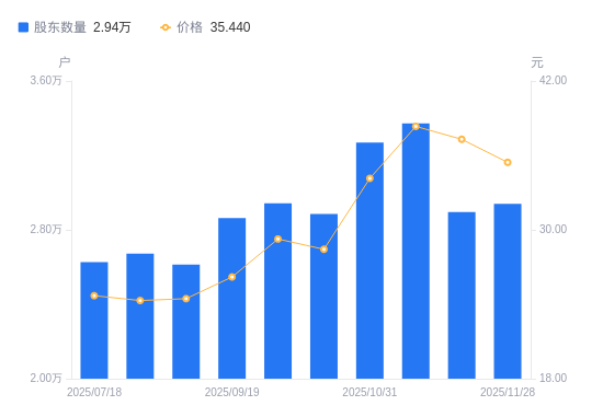 近一年(2024年11月29日至2025年11月28日),川恒股份A股股东户数从2.7万户,增加至2.94万户,增幅8.92%,区间股价上涨71.83%。