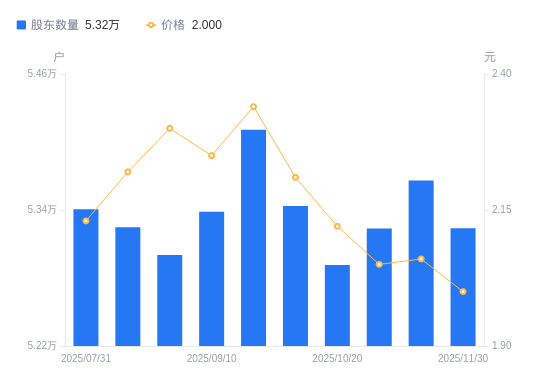 近一年(2024年12月20日至2025年11月30日),节能铁汉A股股东户数从7.1万户,减低至5.32万户,降幅25.07%,区间股价下跌31.51%。