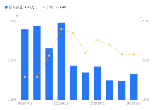 近一年(2024年12月10日至2025年11月28日),赛维时代A股股东户数从1.42万户,增加至1.47万户,增幅2.90%,区间股价下跌13.69%。