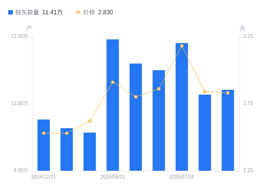 近一年(2024年12月31日至2025年11月30日),晋控电力A股股东户数从10.52万户,增加至11.41万户,增幅8.44%,区间股价上涨9.69%。