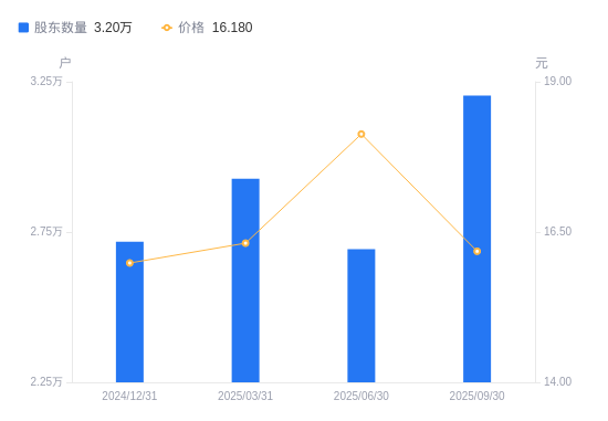 近一年(2024年11月8日至2025年10月31日),派林生物A股股东户数从2.52万户,增加至3.33万户,增幅32.00%,区间股价下跌11.19%。