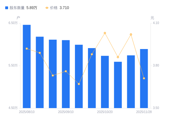 近一年(2024年11月29日至2025年11月28日),恒星科技A股股东户数从6.14万户,减低至5.89万户,降幅4.07%,区间股价上涨30.04%。