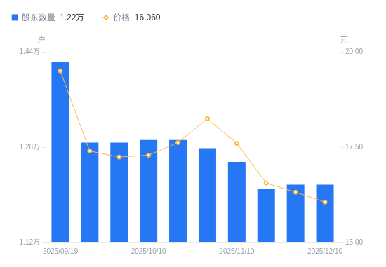 近一年(2024年12月10日至2025年12月10日),久祺股份A股股东户数从1.02万户,增加至1.22万户,增幅19.14%,区间股价上涨36.80%。
