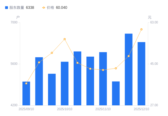 近一年(2024年12月31日至2025年12月10日),绿岛风A股股东户数从5711户,增加至6338户,增幅10.98%,区间股价上涨116.99%。