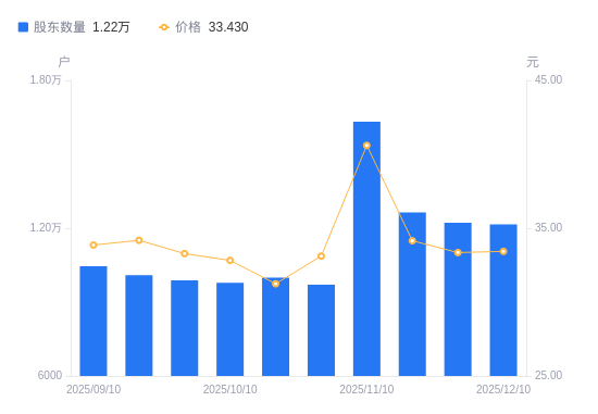 近一年(2024年12月10日至2025年12月10日),众智科技A股股东户数从1.01万户,增加至1.22万户,增幅20.13%,区间股价上涨17.54%。