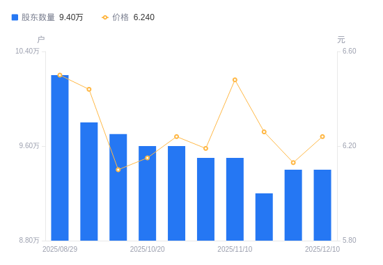 近一年(2024年12月20日至2025年12月10日),黑芝麻A股股东户数从14万户,减低至9.4万户,降幅32.86%,区间股价下跌14.05%。