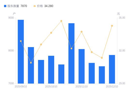近一年(2024年12月31日至2025年12月10日),洁雅股份A股股东户数从7237户,增加至7870户,增幅8.75%,区间股价上涨86.95%。
