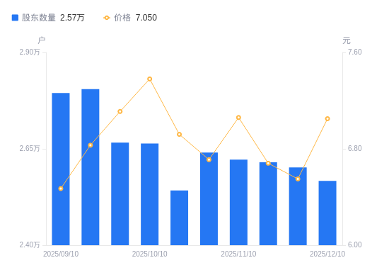 近一年(2024年12月10日至2025年12月10日),润邦股份A股股东户数从3.11万户,减低至2.57万户,降幅17.47%,区间股价上涨32.27%。