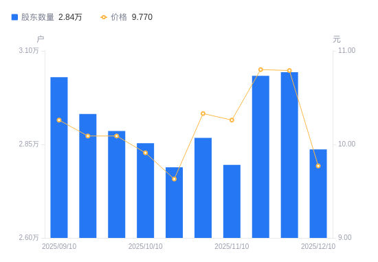 近一年(2024年12月10日至2025年12月10日),世纪天鸿A股股东户数从3.39万户,减低至2.84万户,降幅16.25%,区间股价下跌23.52%。