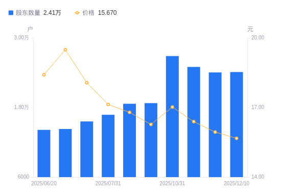 近一年(2024年12月20日至2025年12月10日),鑫铂股份A股股东户数从1.58万户,增加至2.41万户,增幅52.59%,区间股价下跌9.23%。
