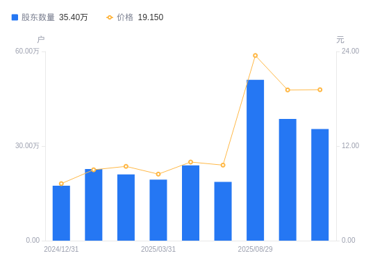 近一年(2024年12月31日至2025年11月28日),华胜天成A股股东户数从17.42万户,增加至35.4万户,增幅103.21%,区间股价上涨156.26%。