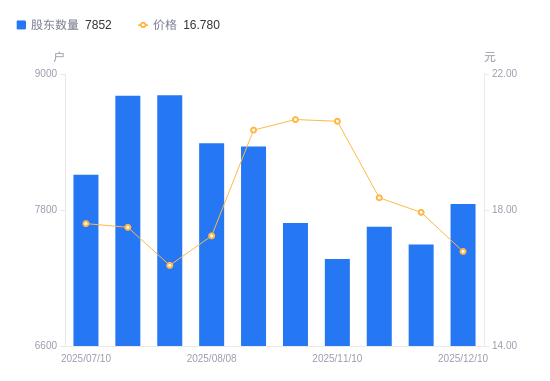 近一年(2024年12月10日至2025年12月10日),中兰环保A股股东户数从7981户,减低至7852户,降幅1.62%,区间股价上涨19.09%。