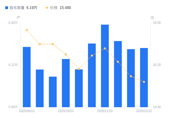 近一年(2024年12月10日至2025年12月10日),欧普康视A股股东户数从6.67万户,减低至6.19万户,降幅7.14%,区间股价下跌18.74%。