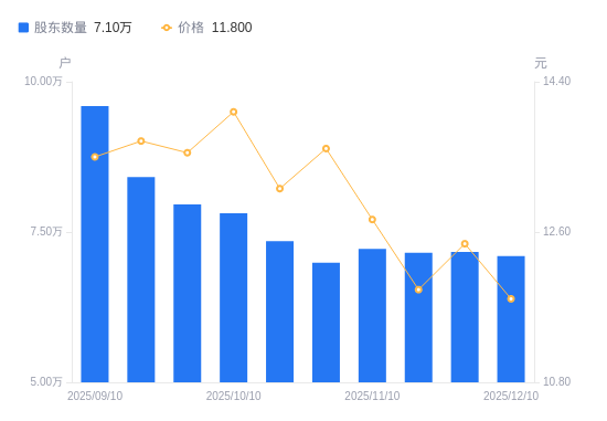 近一年(2024年12月10日至2025年12月10日),创维数字A股股东户数从8.78万户,减低至7.1万户,降幅19.13%,区间股价下跌10.61%。