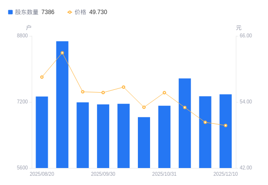 近一年(2024年12月10日至2025年12月10日),盛帮股份A股股东户数从6688户,增加至7386户,增幅10.44%,区间股价下跌3.96%。