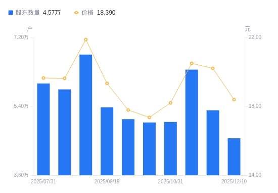 近一年(2024年12月10日至2025年12月10日),元隆雅图A股股东户数从4.87万户,减低至4.57万户,降幅6.20%,区间股价上涨8.30%。