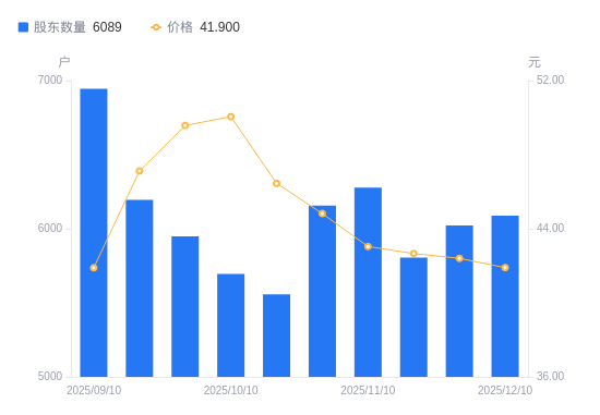 近一年(2024年12月10日至2025年12月10日),英华特A股股东户数从6580户,减低至6089户,降幅7.46%,区间股价上涨11.16%。