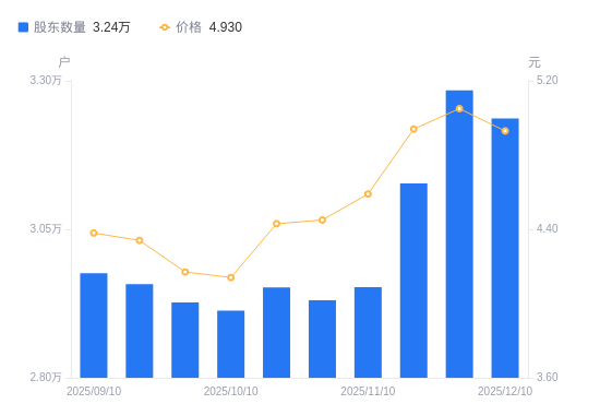 近一年(2024年12月10日至2025年12月10日),融捷健康A股股东户数从3.27万户,减低至3.24万户,降幅1.14%,区间股价上涨11.79%。