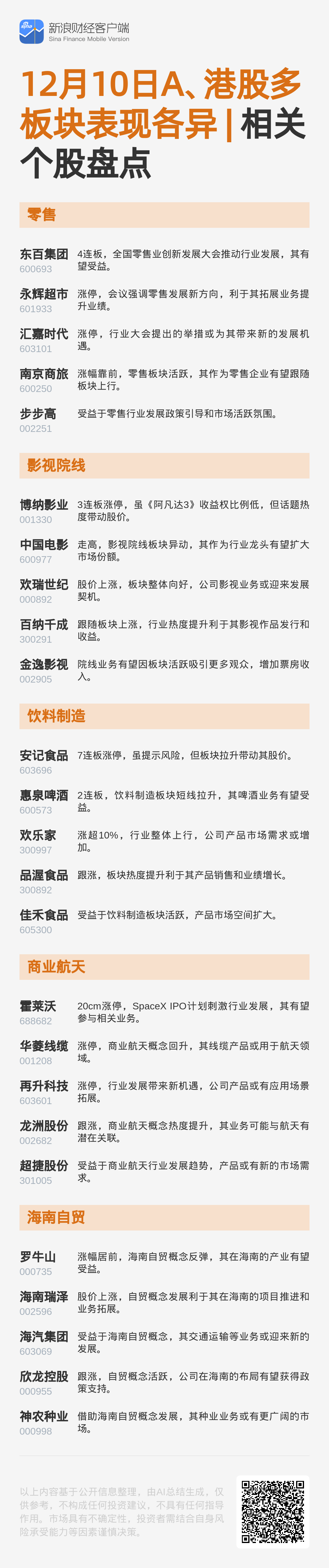 图解热点:12月10日A、港股多板块表现各异