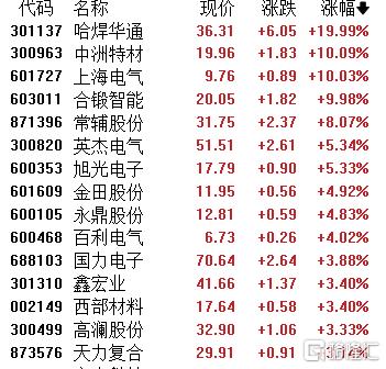可控核聚变板块强势,哈焊华通20CM涨停,中洲特材、上海电气、合锻智能(维权)涨停,常辅股份、英杰电气、旭光电子、金田股份等跟涨。