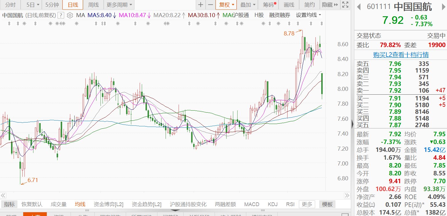 中国国航(601111.SH)今日低开低走,现跌7.37%报7.92元,成交额15.42亿元(昨日4.23亿元),总市值1382亿元。中国国航发布2025年第三季度报告,前三季度实现营业收入1298.26亿元,同比增长1.31%;归属于上市公司股东的净利润为18.70亿元,同比增长37.31%。第三季度实现营业收入490.69亿元,同比增长0.90%;归属于上市公司股东的净利润为36.76亿元,同比下降11.31%。(格隆汇)