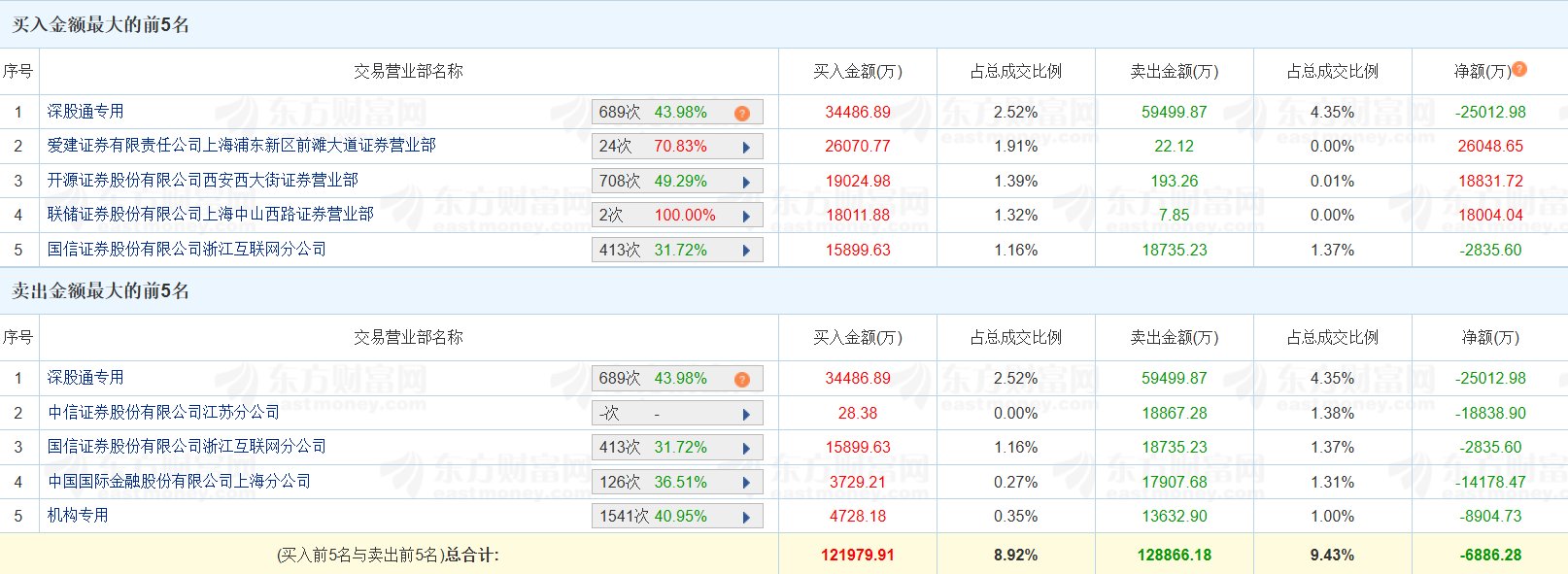 格隆汇12月16日|航天发展(000547.SZ)今日涨6.4%,换手率39.34%,成交额136.69亿元。龙虎榜数据显示,深股通买入3.45亿元,卖出5.95亿元,净卖出2.5亿元;一家机构净卖出8905万元;游资“量化打板”位列买三席位,净买入1.88亿元;“量化基金”位列卖四席位,净卖出1.42亿元。(格隆汇)