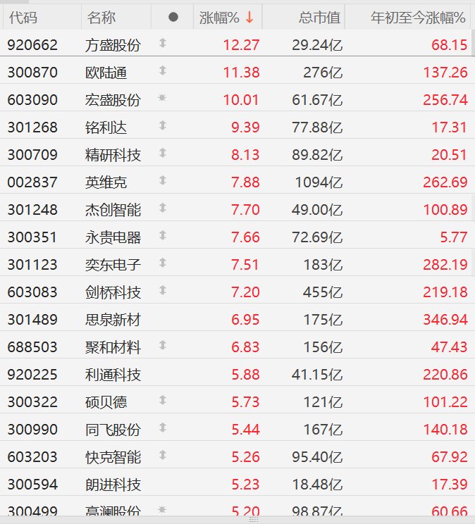 格隆汇12月24日|延续昨日涨势,A股市场液冷概念股今日继续上涨,其中,方盛股份涨超12%,欧陆通涨超11%,宏盛股份10CM涨停,铭利达涨超9%,精研科技涨超8%,英维克、杰创智能、永贵电器、奕东电子、剑桥科技涨超7%,思泉新材、聚和材料涨超6%,利通科技、硕贝德、同飞股份、快克智能、朗进科技(维权)、高澜盼份涨超5%。