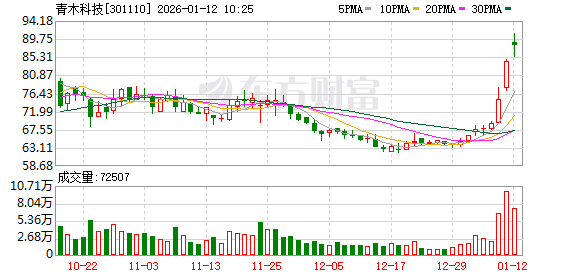 青木科技股价创出历史新高,截至9:38,该股上涨6.55%,股价报89.78元,成交量307.02万股,成交金额2.75亿元,换手率4.70%,该股最新A股总市值达83.08亿元,该股A股流通市值58.69亿元。