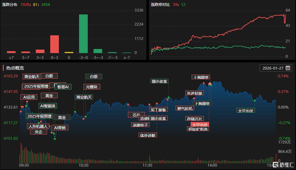盘面上,半导体、汽车芯片板块走强,东芯股份、盛科通信等多股涨停;光伏设备板块拉升,赛伍技术等多股涨停;培育钻石、航天航空及BC电池等板块涨幅居前。另外,猪肉板块下跌,大禹生物跌超4%;煤炭板块走低,大有能源领跌;医药商业板块下跌,漱玉平民领跌超8%;钛白粉板块下挫,国城矿业(维权)跌逾8%;粮食概念走弱,新农开发跌近6%;SPD概念、环氧丙烷及啤酒概念等跌幅居前。