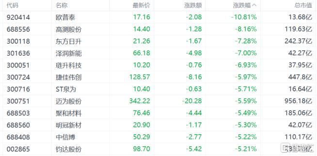 光伏设备股走低,欧普泰跌超10%,高测股份跌超8%,东方日升、润泽新能跌7%,捷佳伟创、迈为股份跌超55。Wood Mackenzie最新研究报告显示,继2024年全球光伏逆变器出货量创新高后,2025年出货量或降至577GWac,降幅为2%,2026年出货量将进一步降至523GWac,降幅约为9%,反映出包括中国、欧洲和美国在内的主要市场存在不确定性。