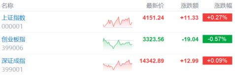 1月28日,A股三大指数涨跌不一。沪指涨0.27%报4151点,深证成指涨0.09%,创业板指跌0.57%。