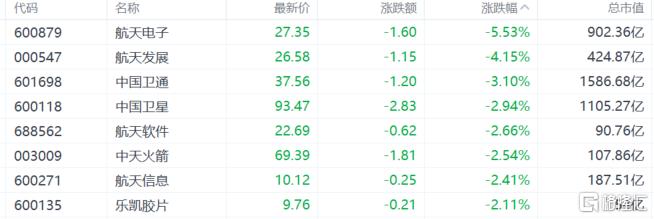 航天系下挫,航天电子跌超5%,航天发展跌超4%,中国卫通跌超3%,中国卫星、航天软件、中天火箭等跌超2%。消息面上,当地时间1月27日,马斯克发文称,SpaceX星舰V3版本(第三代星舰)的首次飞行测试将于六周后在得克萨斯州博卡奇卡的StarBAse发射场进行。另外,欧盟政府卫星通信计划已于“上周”启动。