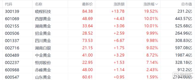 贵金属继续火热,西部黄金、湖南黄金、招金黄金、四川黄金涨停,湖南白银大涨超9%。消息面上,美联储暂停降息,现货黄金一度突破5590美元/盎司,年初迄今涨幅已高达近30%。现货白银一度站上120美元/盎司,创下历史新高,年内涨幅超67%。