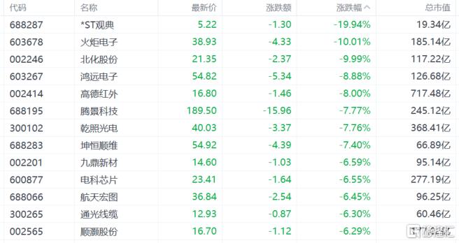 商业航天股集体回调,火炬电子、北化股份跌停,鸿远电子、高德红外跌超8%。
