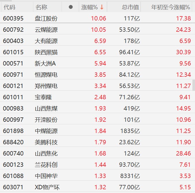 格隆汇1月30日|A股市场煤炭股今日逆势普涨,其中,盘江股份、云煤能源涨停,大有能源、陕西黑猫涨超6%,新大洲A涨近6%,恒源煤电、郑州煤电涨超3%,宝泰隆涨超2%。消息面上,盘江股份预告,2025年实现净利润同比增加205.30%到264.83%。