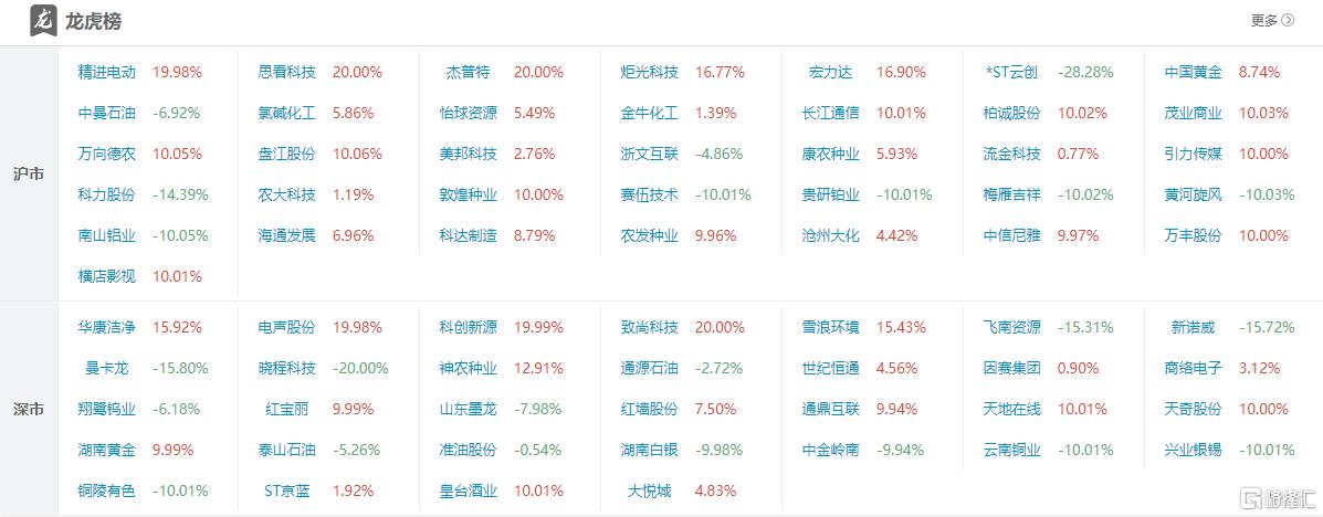 龙虎榜中涉及机构专用席位的个股中,当日净卖出额前三为湖南黄金、中曼石油、天地在线,分别为7.04亿元、2.44亿元、1.08亿元。