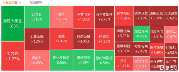 盘面上,光伏、BC电池板块爆发,泽润新能、帝科股份等多股涨停;船舶制造板块走高,海兰信涨超15%;CPO概念活跃,天通股份等多股涨停;小金属股拉升,东方钽业涨停;商业航天板块走强,神剑股份等多股涨停;激光雷达、蓝宝石、大飞机、工程机械及航母概念等涨幅居前。另外,银行、保险及酿酒行业等少数板块录得下跌。