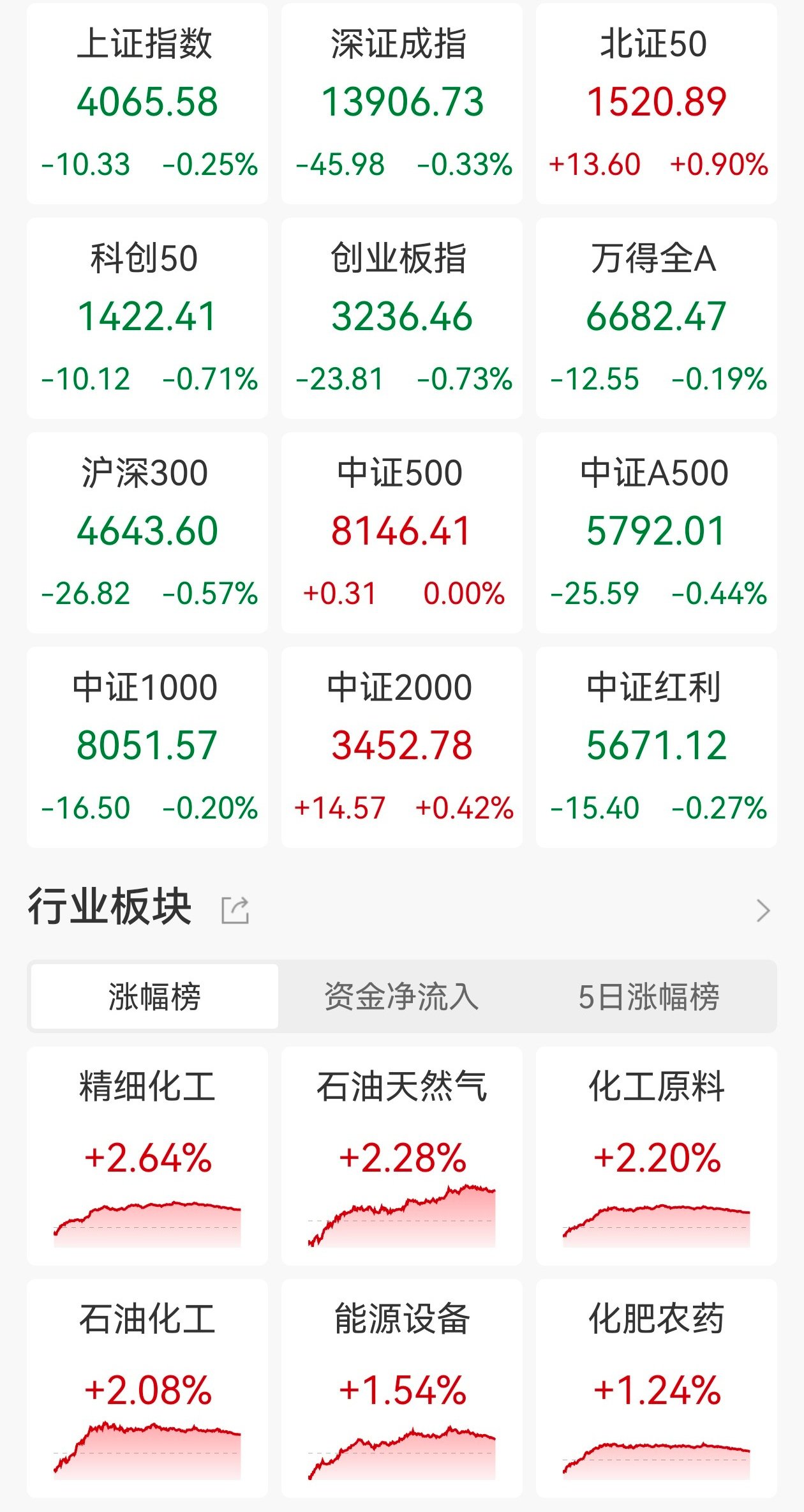 A股三大指数今日小幅下跌,截至收盘,沪指跌0.25%报4065点,深证成指跌0.33%,创业板指跌0.73%。全市场成交额2.16万亿元,较前一交易日缩量308亿元,超2700股上涨。