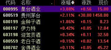 白酒股高开低走,皇台酒业涨超3%,贵州茅台涨超2%,金种子酒、伊力特小幅上涨,山西汾酒、古井贡酒跌超2%。