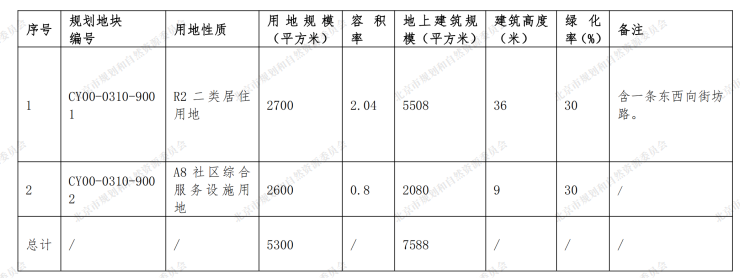 ①9001地块为R2二类居住用地,地上建面5580㎡,容积率2.04,限高36米。
