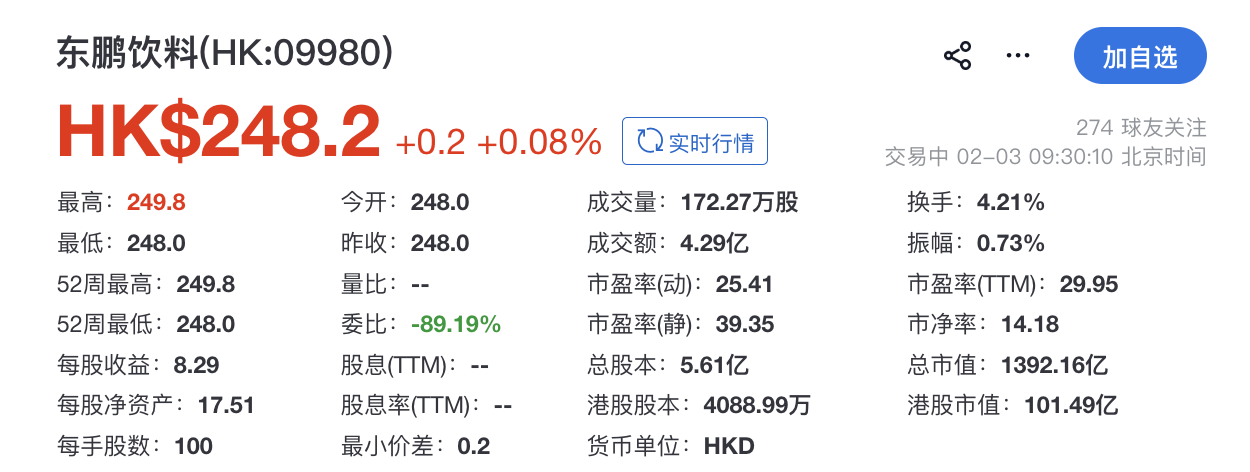 乐居财经 刘治颖2月3日,东鹏饮料(09980.HK)在港交所挂牌上市,联席保荐人为华泰国际、摩根士丹利、瑞银集团,开盘涨0.08%,总市值1392.16亿港元。