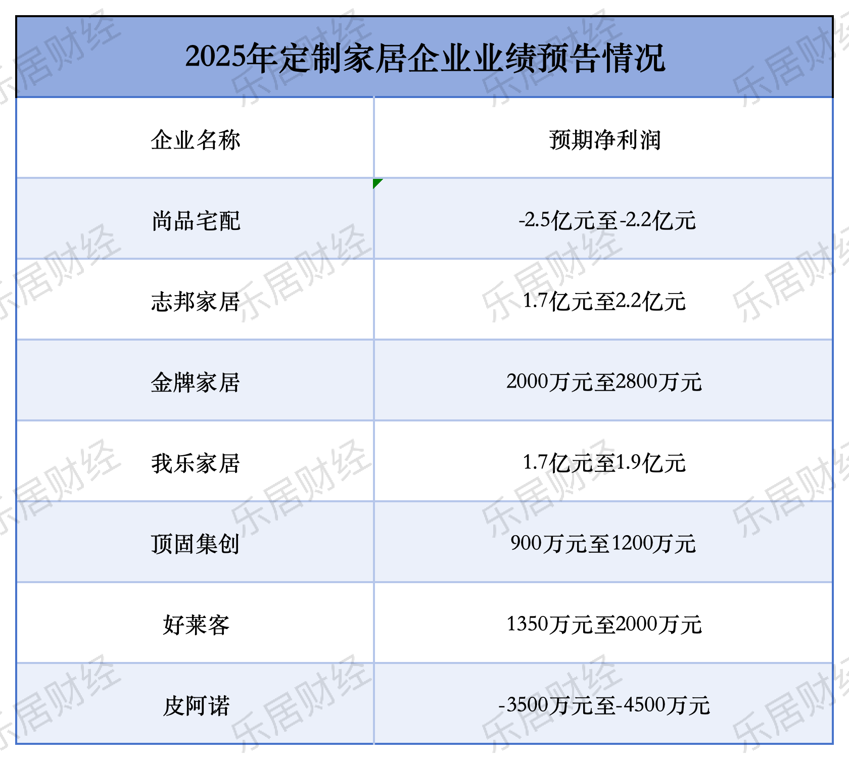 据乐居财经统计,截至当前,已有志邦家居、尚品宅配、金牌家居、好莱客、我乐家居(维权)、顶固集创、皮阿诺7家主流上市企业发布2025年业绩预告,这些数据直观呈现了行业分化的真实图景。