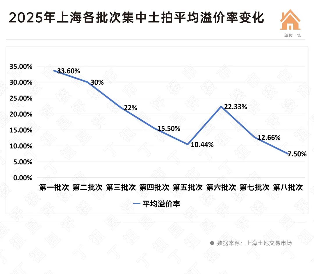 一方面,八批次出让的6幅地块有一半为底价成交,平均溢价率只有7.5%,是2025年各批次热度最低的一次。