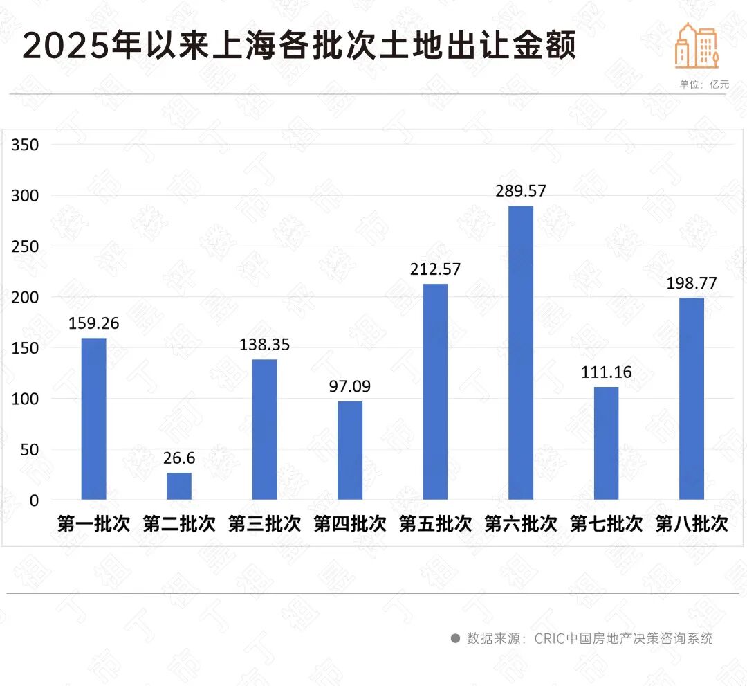 上海第八批次地块揽金199亿元,至此上海八批次土地出让总金额累计达到1233.37亿元。